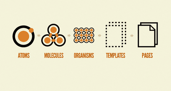 Em 2013, o designer Brad Frost propôs a metodologia do Atomic Design baseada na organização dos átomos como forma de padronizar elementos de design e desenvolvimento de produtos digitais. Podendo ajudar a construir projetos mais consistentes e em menos tempo.