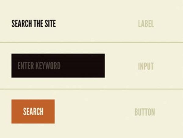 Um exemplo seria unir uma forma e um texto para criar um botão, ou um input aliado a tipografia e uma imagem para gerar um formulário.