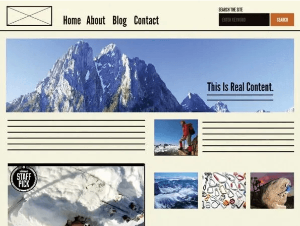Um header por exemplo pode ter elementos diferentes como a imagem do logo, lista de navegação e formulário de busca.