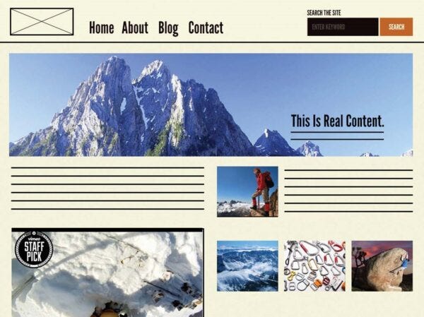 Templates são objetos a nível de página que demonstram o posicionamento de componentes em um layout e articulam a estrutura de conteúdo subjacente do design (textos, imagens e demais mídias). Seguindo com o exemplo anterior, temos o header aplicado a um template de homepage.